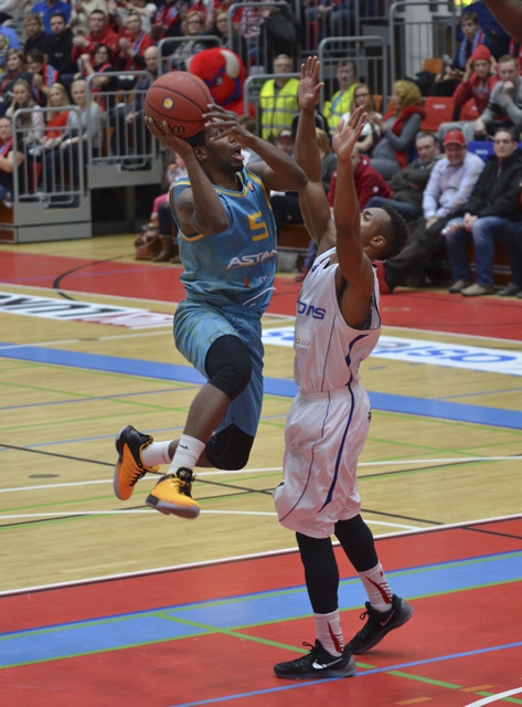 Подопечные Грега Гибсона сразу пошли в атаку, возглавляемые своим лидером Мартином Зено. При этом они сумели организовать очень плотную оборону — особенно на периметре: за всю первую половину «Астана» реализовала всего один трехочковый из 12. Более или менее стабильно коллектив Рамунаса Бутаутаса набирал очки через «краску», но этого не хватало, чтобы догнать убежавших финнов. К перерыву преимущество «бизонов» составляло 17 очков — 51:34.