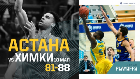 В Нур-Султане завершился третий матч 1/4 финала серии плей-офф Единой лиги ВТБ между “Астаной” и “Химками”. Не смотря на поддержку родных трибун, столичная команда уступила химчанами и завершила свое выступление в текущем сезоне - 81:88 (25:24, 21:26, 14:17, 19:21).